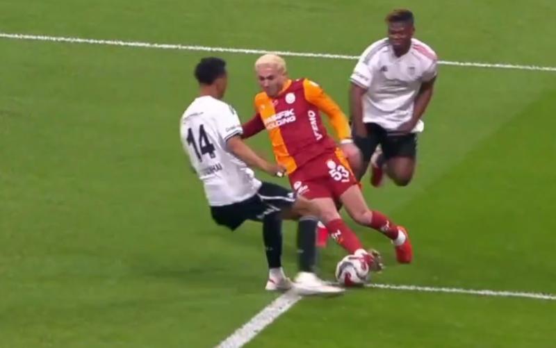 Barış Alper Yılmaz, Agbadou'dan sıyrıldıktan sonra ceza alanına girdi ve Uduokhai ile mücadelesi sonrası yerde kaldı.