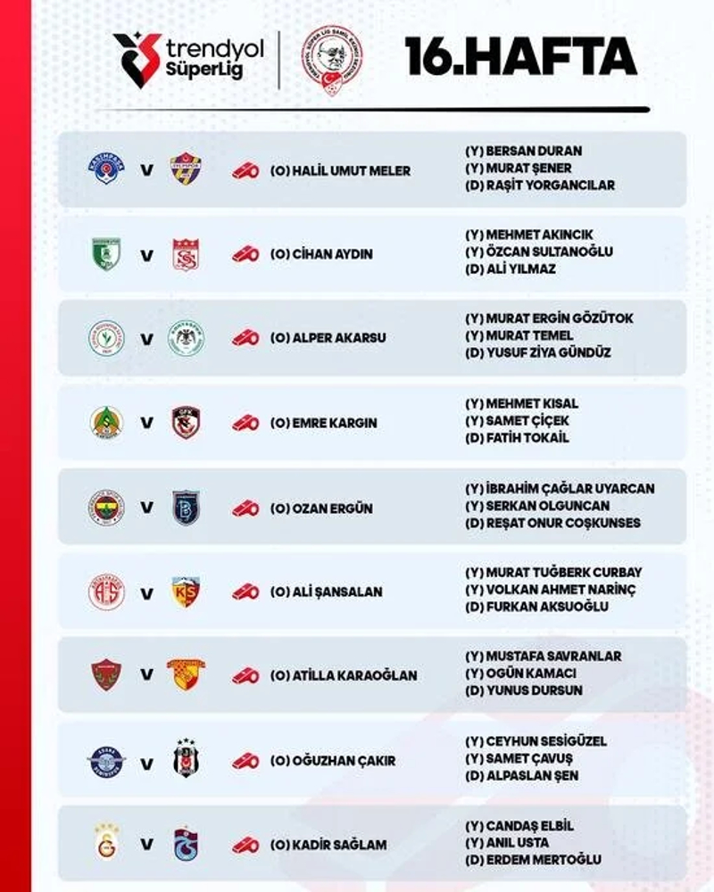 Süper Lig'in 16. haftasının hakemleri açıklandı.
