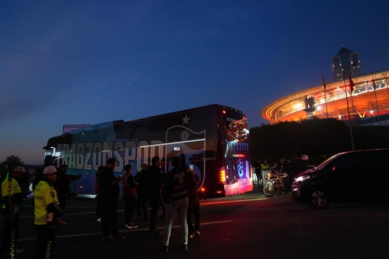 Trendyol Süper Lig'in 11. haftasında Trabzonspor, saat 20.00'de Galatasaray'a konuk olacak. Mücadele için dün İstanbul'a gelen bordo-mavililer, akşam saatlerinde konakladığı otelden ayrılarak, RAMS Park'a ulaştı. Bordo-mavili kafile, yoğun güvenlik önlemleri altında stada giriş yaptı.