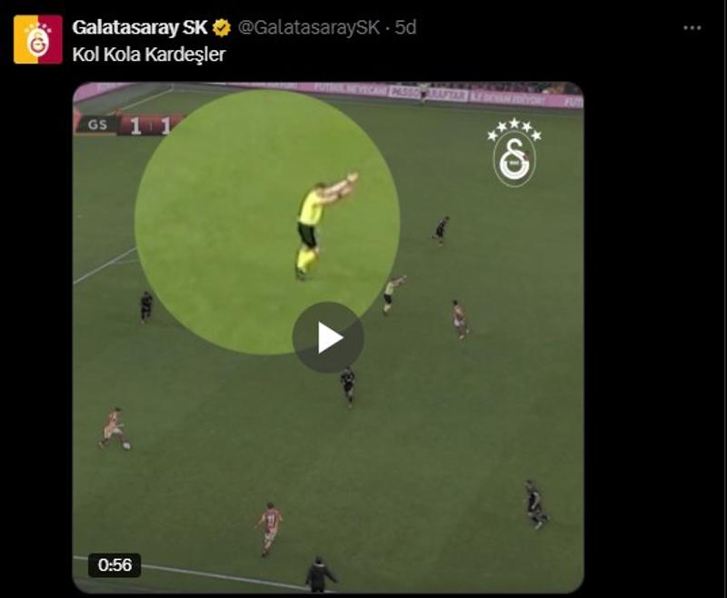 Karşılaşma sırasında yaşanan bir pozisyonu paylaşan Galatasaray, Trabzonspor karşılaşmasında hakem Arda Kardeşler'in yer aldığı bir pozisyonu örnek gösterdi. Sarı kırmızılılar, "Kol Kola Kardeşler" başlığıyla hakem Yasin Kol'un kararına tepki gösterdi.