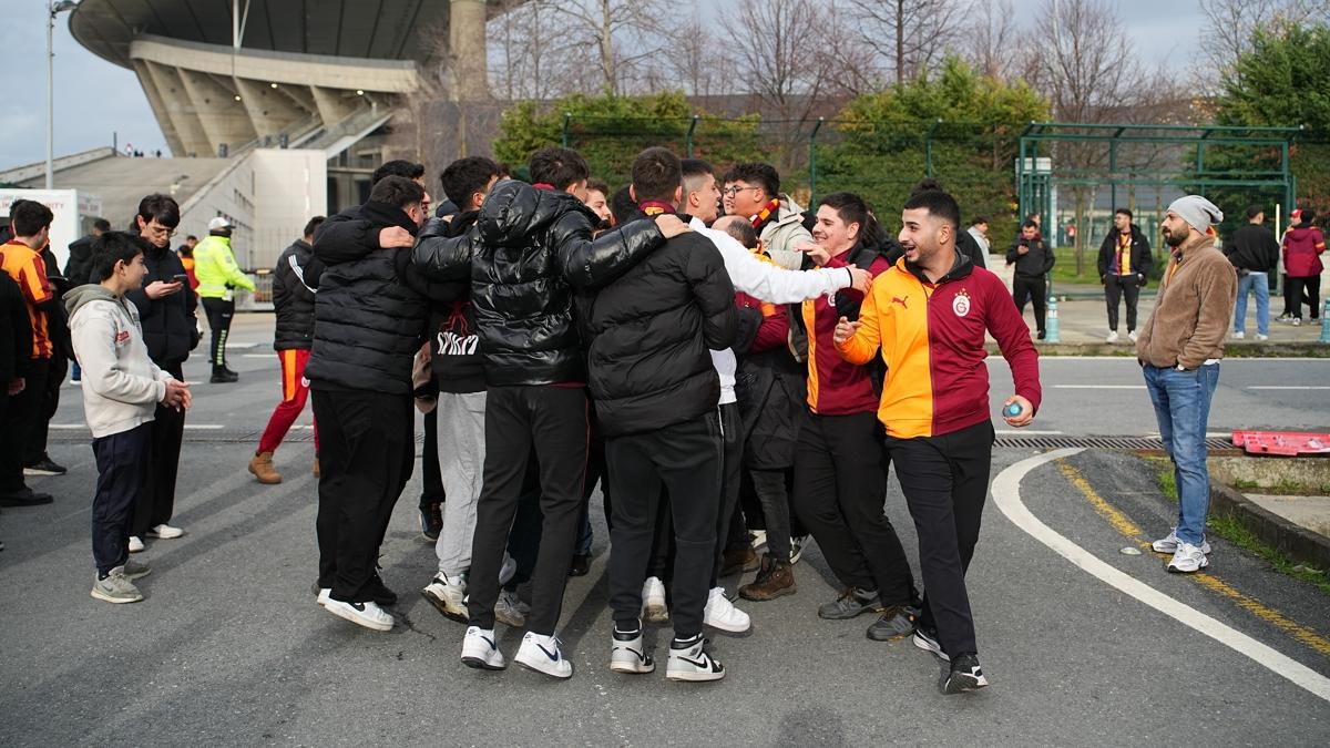 Galatasaraylı taraftarlar stat etrafında yaptıkları beste ve tezahüratlarla derbiye hazırlandı. Taraftarlar 15.45 itibarıyla stada giriş yaparken, kendilerine ayrılan bölüm olan Batı ve Güney Tribünü'ndeki yerlerini aldı.