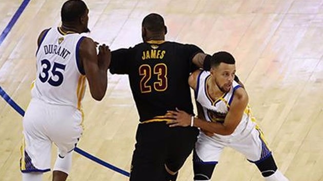 Golden State Warriors, maçın ilk yarısında 12 üçlük isabeti bularak rekor kırarken, ev sahibi ekipte LeBron James 39 sayı, 11 ribaunt ve 9 asist ile oynarken, Kyrie Irving 38 sayı buldu ancak yeterli olmadı.