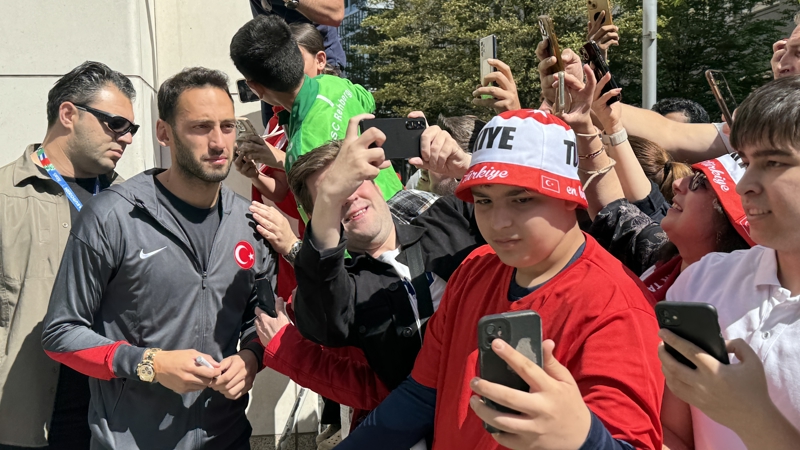 Kaptan Hakan Çalhanoğlu, otobüse binmeden taraftarların yanına gitti ve uzun süre imza dağıtıp, fotoğraf çektirdi. Taraftarlar, Hakan Çalhanoğlu'na büyük destek verirken, A Milli Takım'ın ortaya koyduğu futboldan dolayı teşekkür etti. Kaptan Hakan'ın bu anlarda oldukça duygulandığı görüldü.