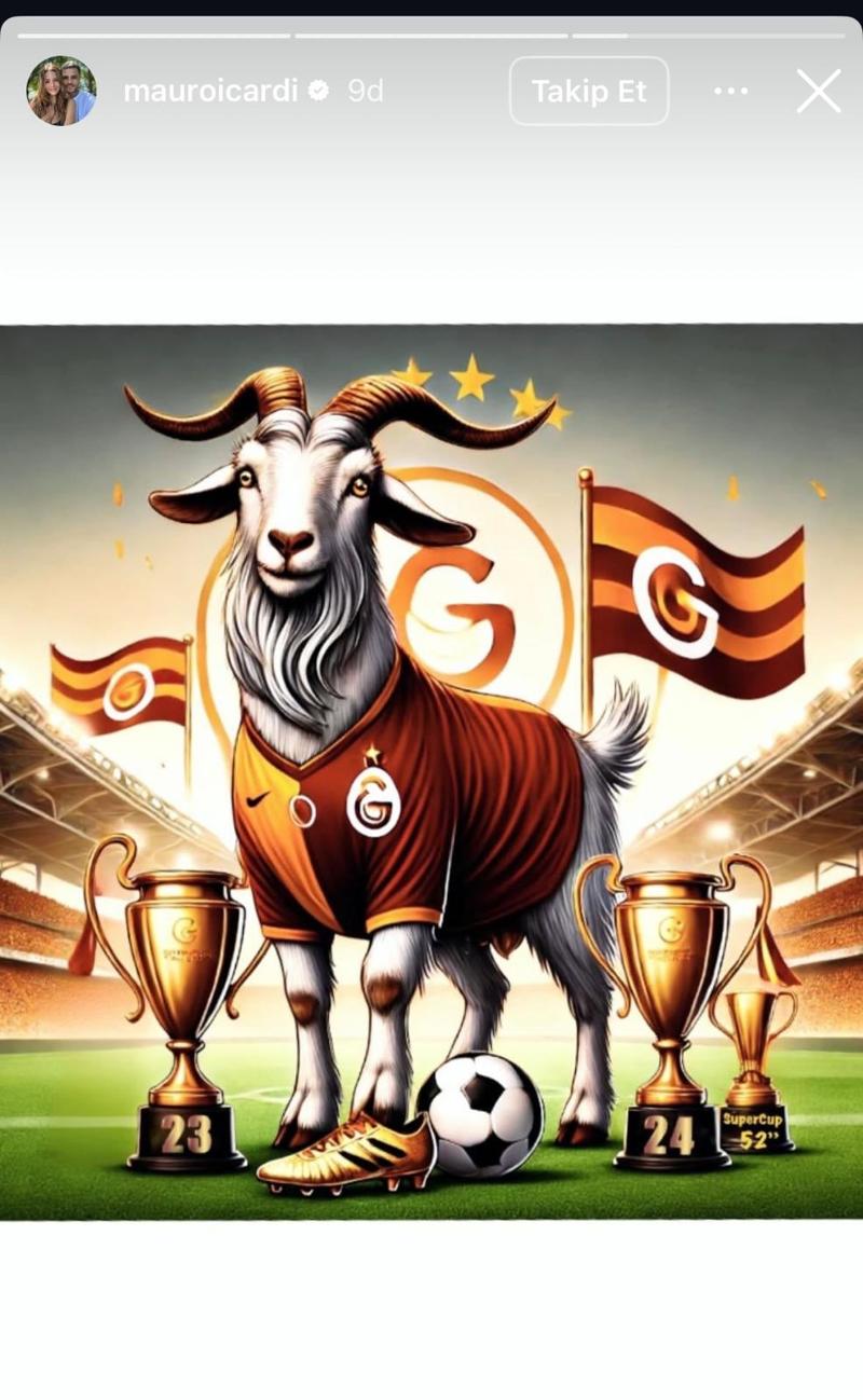 Mourinho'nun kendisine 'GOAT' demesine göndermede bulunan Galatasaray forması giymiş bir keçi (İngilizce karşılığı goat) görseli paylaştı.