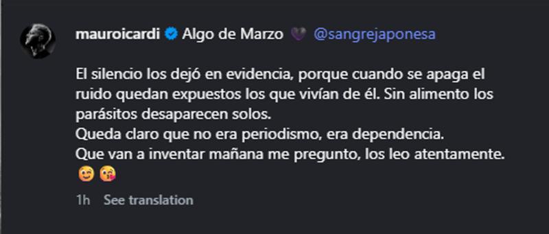 "Sessizlik onları ele verdi; çünkü gürültü kesildiğinde, ondan beslenenler açığa çıkar. Besinsiz kalan parazitler kendiliğinden yok olur. Bunun gazetecilik değil, bağımlılık olduğu çok açık. Yarın ne uyduracaklar merak ediyorum, sizi dikkatle okuyorum."