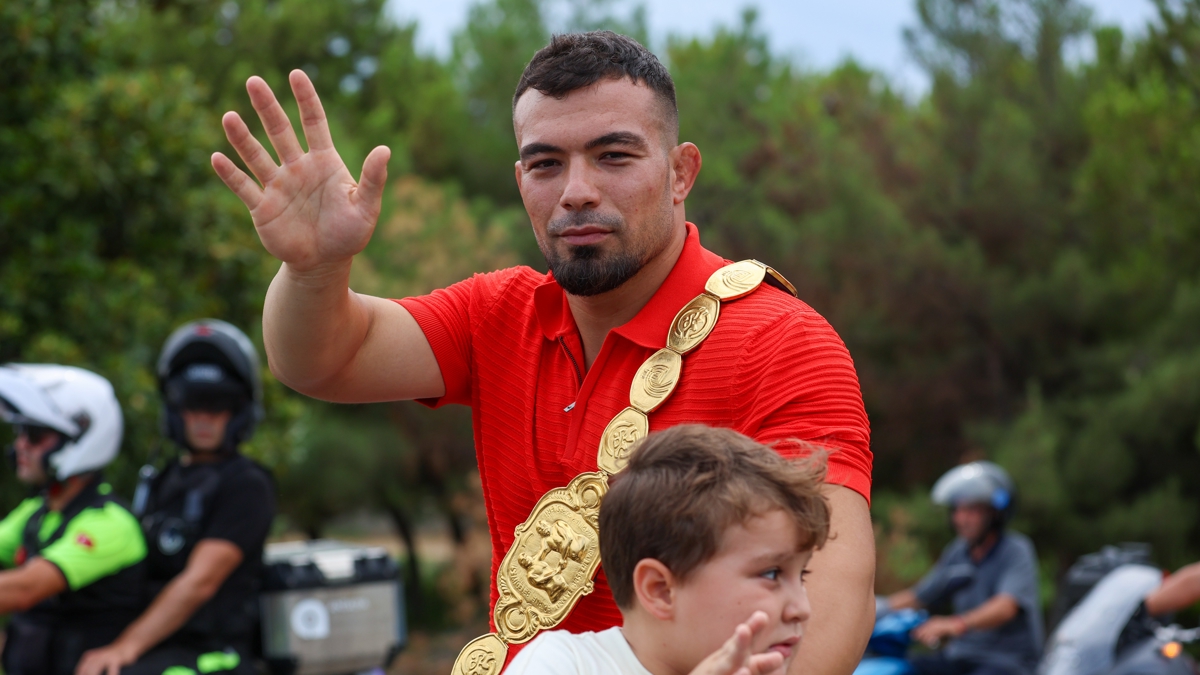 663. Tarihi Kırkpınar Yağlı Güreşleri'nde başpehlivanlığı kazanan Yusuf Can Zeybek için memleketi Antalya'da karşılama töreni düzenlendi.