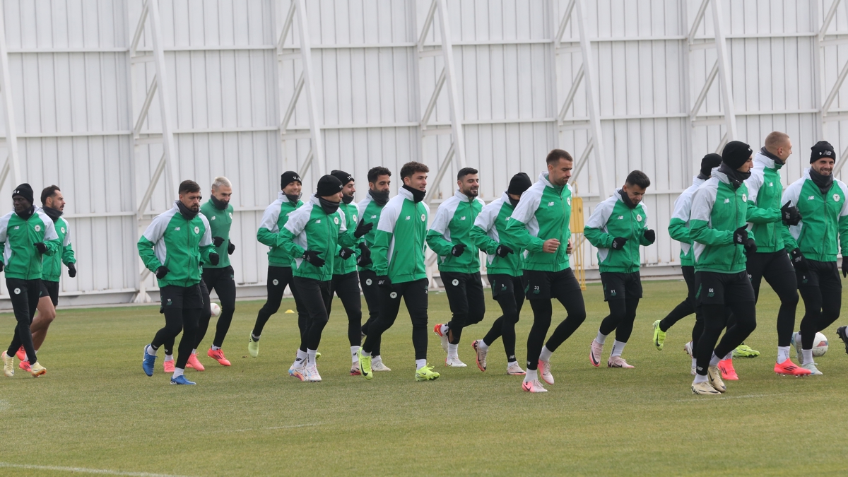 Konyaspor, antrenmana ısınma hareketleriyle başladı.