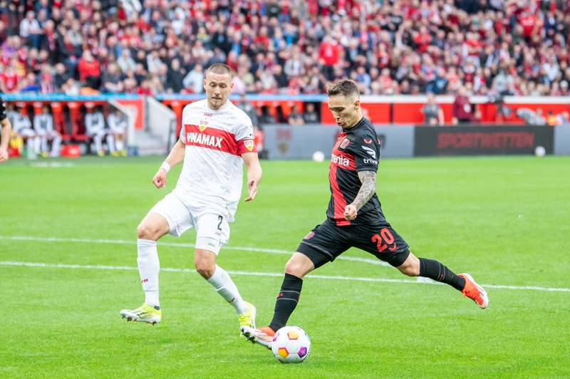 Konuk takım Chris Führich'in 47 ve Deniz Undav'ın 56. dakikada attığı gollerle 2-0 üstünlük yakaladı. Amine Adli'nin 61. dakikada rakip fileleri havalandırmasıyla farkı bire indiren Bayer Leverkusen, uzun süre yenik durumda götürdüğü mücadelede bir puanı, uzatma dakikalarında gelen golle kurtardı. Robert Andrich'in 90+6. dakikada attığı golle karşılaşma 2-2 sona erdi.