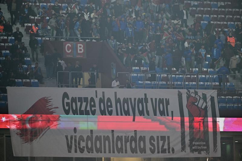 Bordo-mavili taraftarlar, kale arkasına "Gazze'de hayat var, vicdanlarda sızı" ve "Sumudumuz Gazze'ye" yazılı pankartlar astı. Trabzonsporlu futbolcular da sahaya "All Eyes Sumud Flotilla (Tüm Gözler Sumud Filosu'nda) " yazılı pankart ile sahaya çıktı.