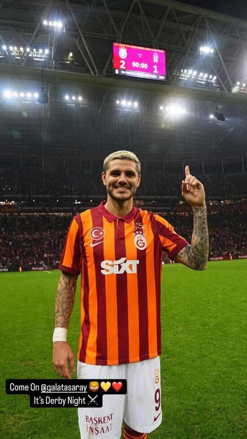 Arjantinli yıldız, daha önce Beşiktaş'ı 2-1 mağlup ettikleri maçtan bir fotoğraf paylaştı. Icardi, bu paylaşımına, "Derbi akşamı. Haydi Galatasaray." sözlerini yazdı.
