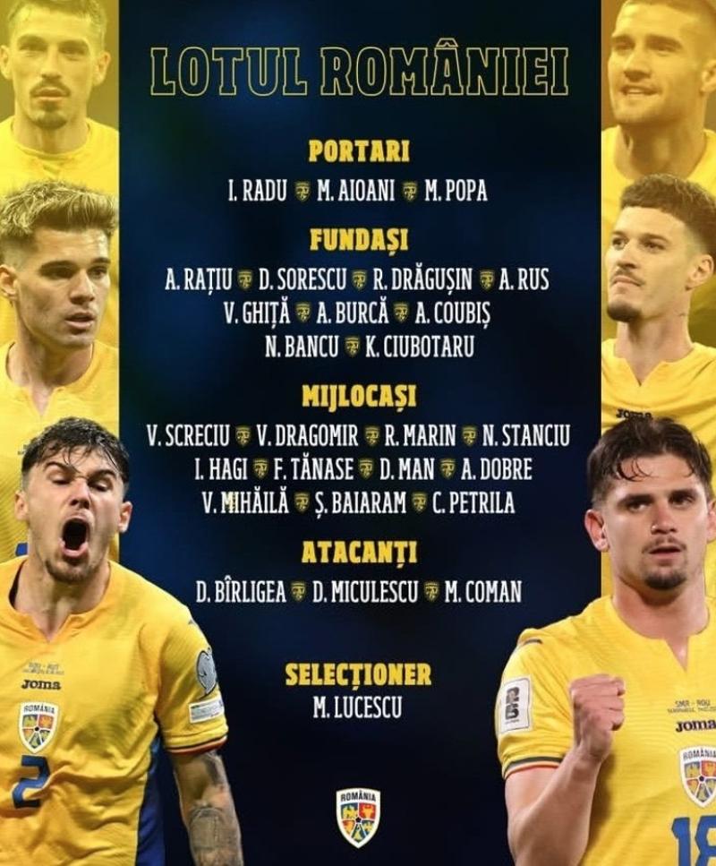 Defans: Andrei Ratiu (Rayo Vallecano), Deian Sorescu (Gaziantep FK), Radu Draguşin (Tottenham), Andrei Burca (Yunnan Yukun FC), Virgil Ghita (Hannover 96), Adrian Rus (CS Universitatea Craiova), Andrei Coubiş (FC Universitatea Cluj), Nicuşor Bancu (CS Universitatea Craiova), Kevin Ciubotaru (FC Hermannstadt)