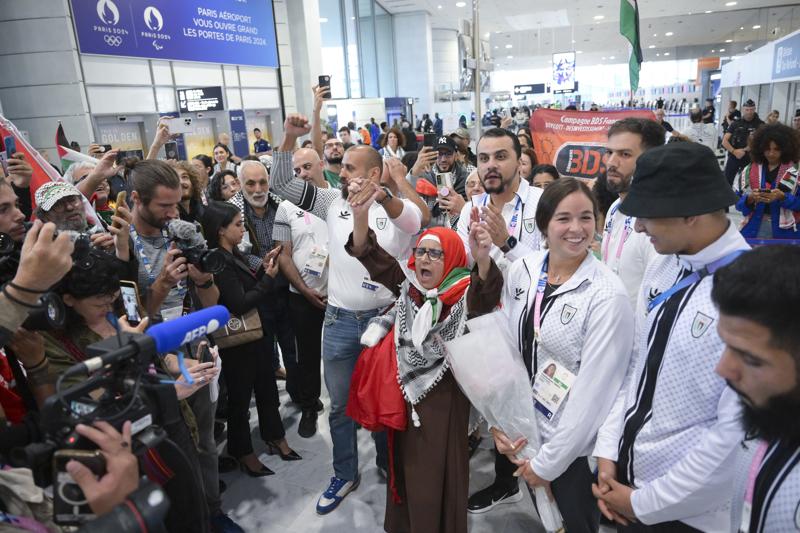 Paris 2024 Olimpiyatları'nda yarışacak Filistinli sporcular, Paris Charles de Gaulle Havalimanı'nda coşkuyla karşılandı.