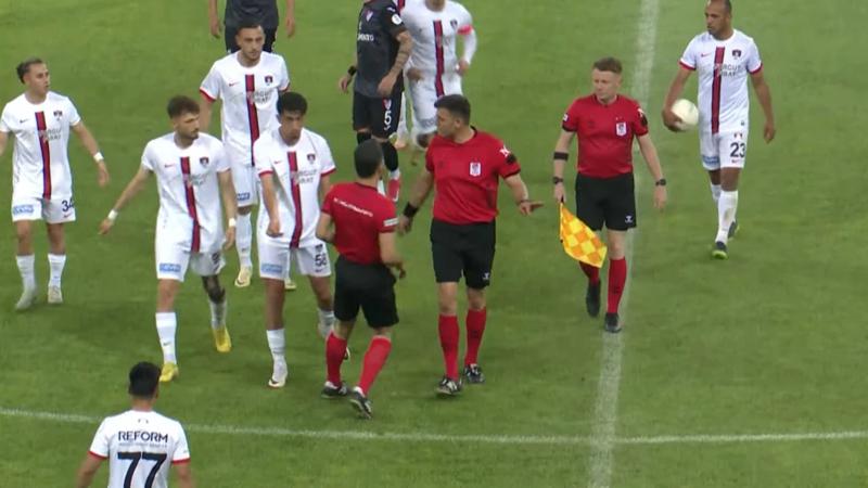 Tribünlerden atılan yabancı maddelerden birinin yardımcı hakem Murat Temel'e isabet etmesinin ardından maçın hakemi Ümit Öztürk yardımcılarıyla birlikte soyunma odasına gitti.
