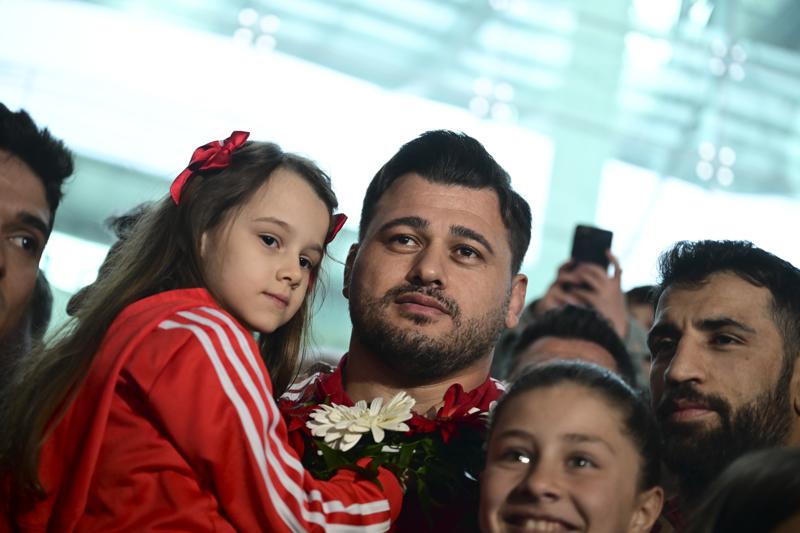 Rıza Kayaalp, Arnavutluk'ta düzenlenen organizasyonun ardından grekoromen milli takımıyla birlikte önce İstanbul'a daha sonra Esenboğa Havalimanı'na indi.