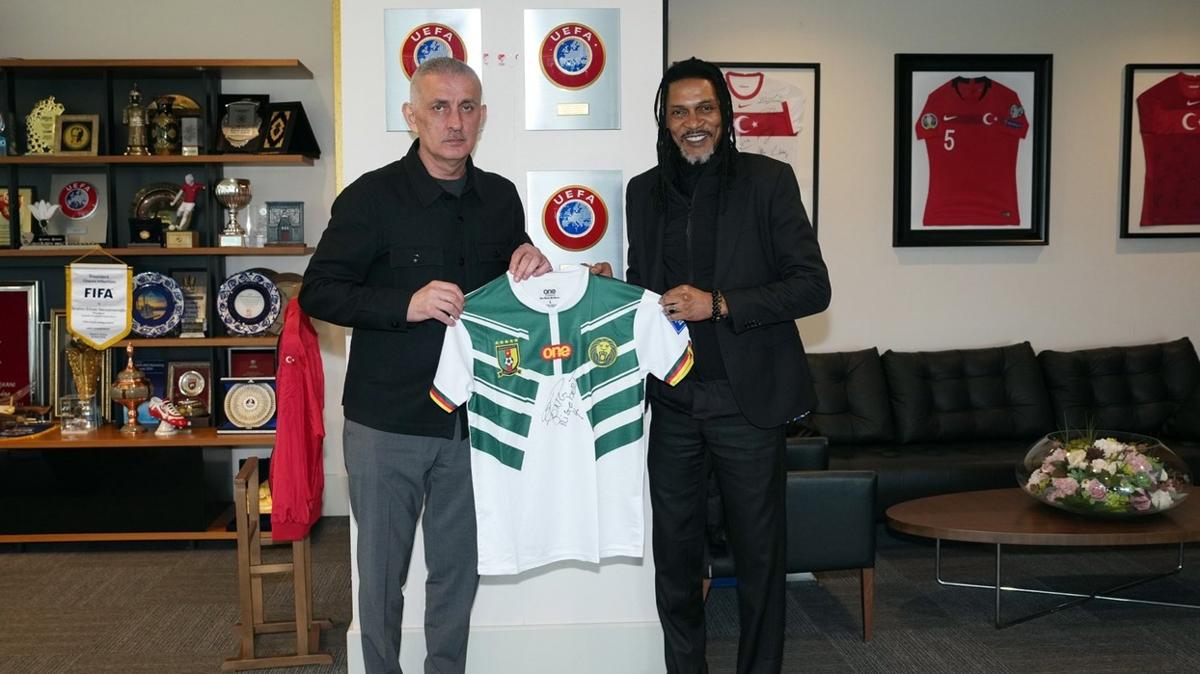 TFF Yönetim Kurulu üyeleri Tahir Ediz Kıray ve Bilal Arslan'ın da yer aldığı ziyarette; TFF Başkan Vekili Mecnun Otyakmaz, Rigobert Song'a üzerinde isminin yazılı olduğu A Milli Takım forması hediye etti.