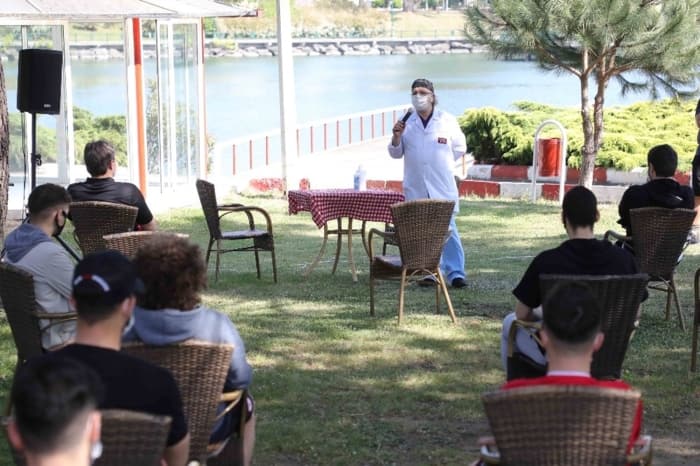 Nuri Asan Tesisleri’nde yapılan seminere Dr. Öğr. Üyesi Utku Kavruk, koronavirüse karşı uyulması gereken kurallar hakkında bilgiler aktardı. Seminere Genel Menajer Mustafa Aztopal, Teknik Menajer Yücel Uyar, Teknik Direktör Ertuğrul Sağlam, teknik heyet, futbolcular ve kulüp çalışanları katıldı.