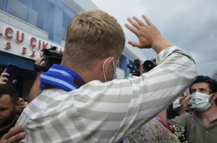 Trabzonspor'un anlaşmaya vardığı forvet oyuncusu Andreas Cornelius, Trabzon Havalimanı'nda taraftarlarca coşkuyla karşılandı.