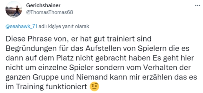 "İyi antrenman yaptı" ifadesi, o zaman sahaya çıkamayan oyuncuları sahaya koymasının sebebidir. Bu bireysel oyuncularla ilgili değil, tüm grubun davranışlarıyla ilgili ve kimse bana Sörloth'un antrenmanda işe yaradığını söyleyemez.