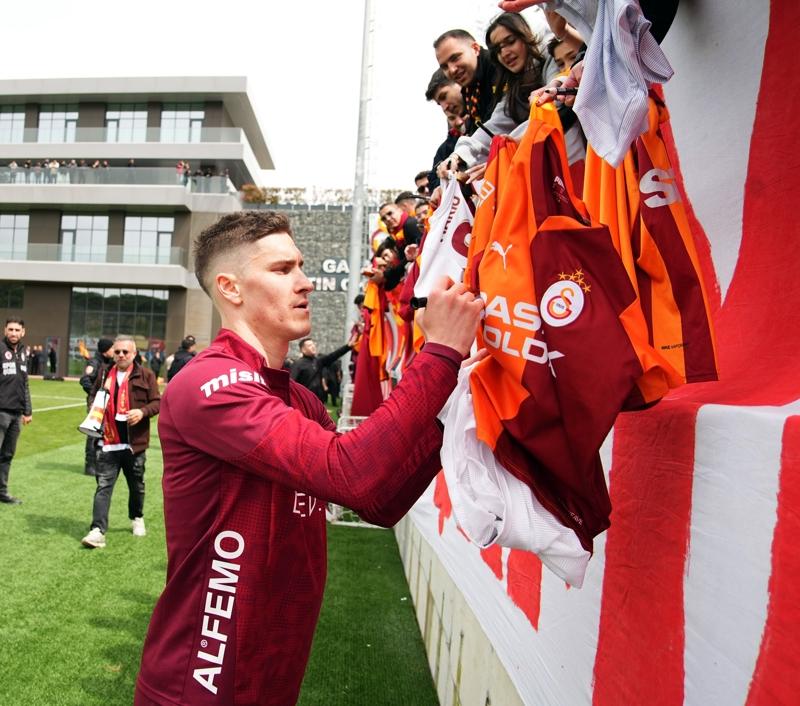 İdman öncesinde futbolcuları tek tek çağıran taraftarlar, oyunculara moral aşıladı. UEFA Şampiyonlar Ligi'nde Liverpool müsabakasında kolu kırıldığı için Süper Lig'deki son 3 maçta forma giyemeyen Victor Osimhen'e büyük ilgi gösterildi.