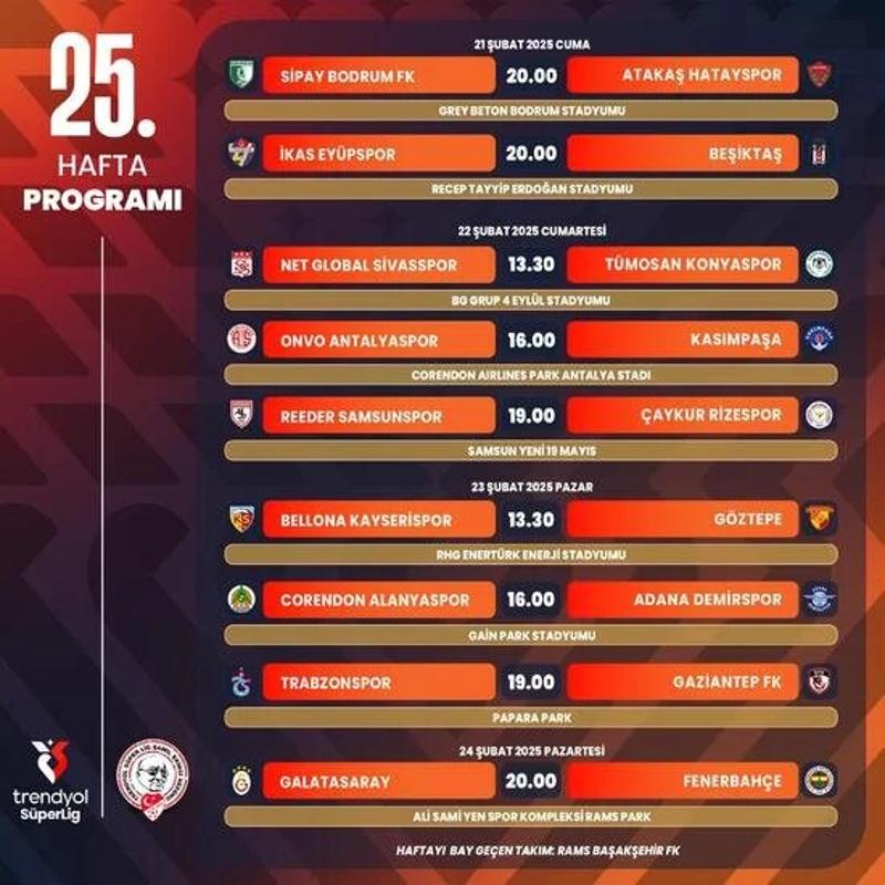TFF'den yapılan açıklamada, "Trendyol Süper Lig Şamil Ekinci Sezonu'nda 25, 26 ve 27. hafta müsabakalarına ilişkin programlar açıklanmıştır. Programlar öncelikle kulüplerimizin UEFA Avrupa Ligi'ndeki maç programları ile 25, 26, 27 Şubat tarihlerinde oynanacak olan Ziraat Türkiye Kupası Grup Aşaması 3. maçlarına göre planlanmıştır. 1 Mart Cumartesi günü başlayacak olan Ramazan ayı sebebiyle, geçmiş yıllarda olduğu gibi son maç saatleri 20.30 olarak belirlenmiştir." denildi.