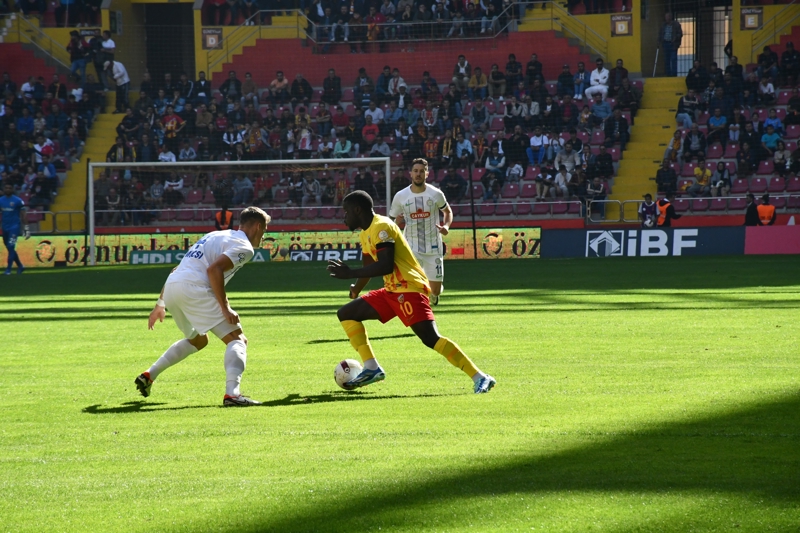 31. dakikada Kayseri ekibi öne geçti. Sol kanatta topla buluşan Cardoso'nun ceza sahasına ortasına Thiam'ın kafa vuruşunda meşin yuvarlak üst direğe çarparak içeri girdi: 1-0