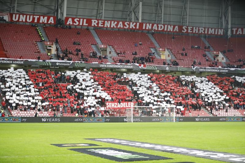 Tribünlerin büyük bölümünü dolduran kırmızı-beyazlılar, "dev" Samsunspor bayraklarla stadyumu süsledi.
