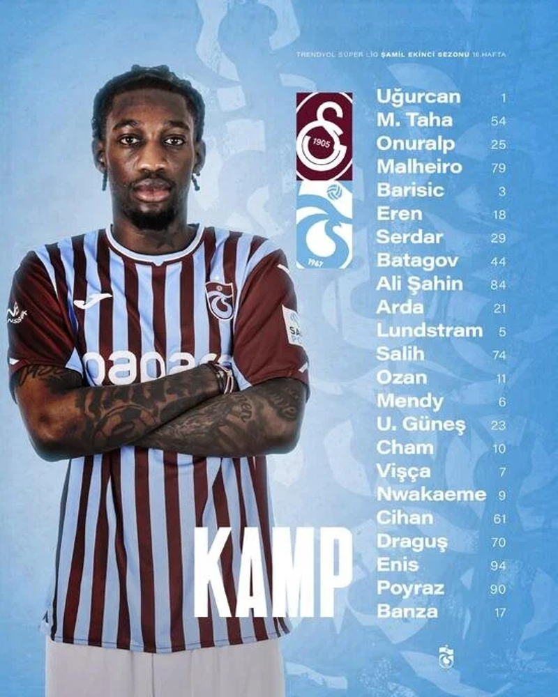 Trabzonspor, Süper Lig'in 16. haftasında karşılaşacağı Galatasaray maçının kadrosunu açıkladı.