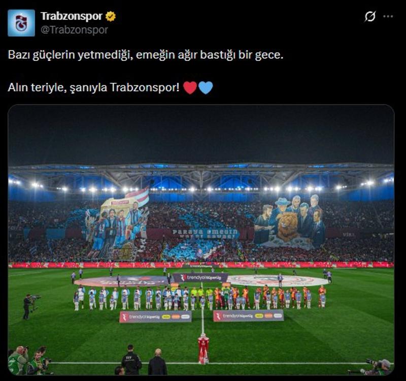 Süper Lig'de Trabzonspor, 28. hafta karşılaşmasında sahasında Galatasaray'ı ağırladı. Bordo mavililer maçı 2-1'lik skorla kazanırken, karşılaşma sonrası üst üste paylaşımlar geldi.