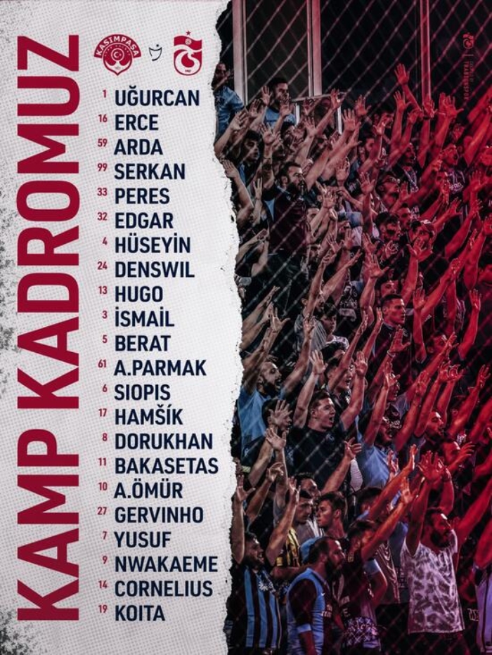 Trabzonspor'un Kasımpaşa ile oynayacağı maçın kamp kadrosu açıklandı.