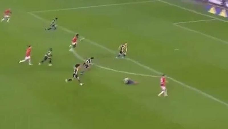 Gençlerbirliği'nden Oğulcan Ülgün, 41. dakikada gelen pas sonrası kaleciyle karşı karşıya kalacağı pozisyonda rakibi Mert Müldür'ün yerde kaldığını gördü ve kaleye gitmedi.