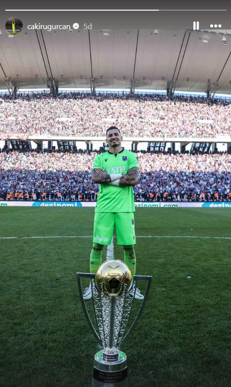 Uğurcan Çakır, Trabzonspor'un şampiyonluk kupasıyla çektirdiği fotoğrafını sosyal medya hesabından paylaştı.Tecrübeli eldivenin bu paylaşımı kısa süre içinde sosyal medyada gündem oldu.