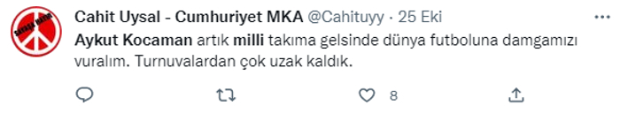 Stefan Kuntz ile yolların ayrılmasını isteyen taraftarlar sosyal medyada harekete geçti. Birçok taraftar Aykut Kocaman'ın milli takım teknik direktörlüğüne getirilmesi için paylaşımlarda bulundu.