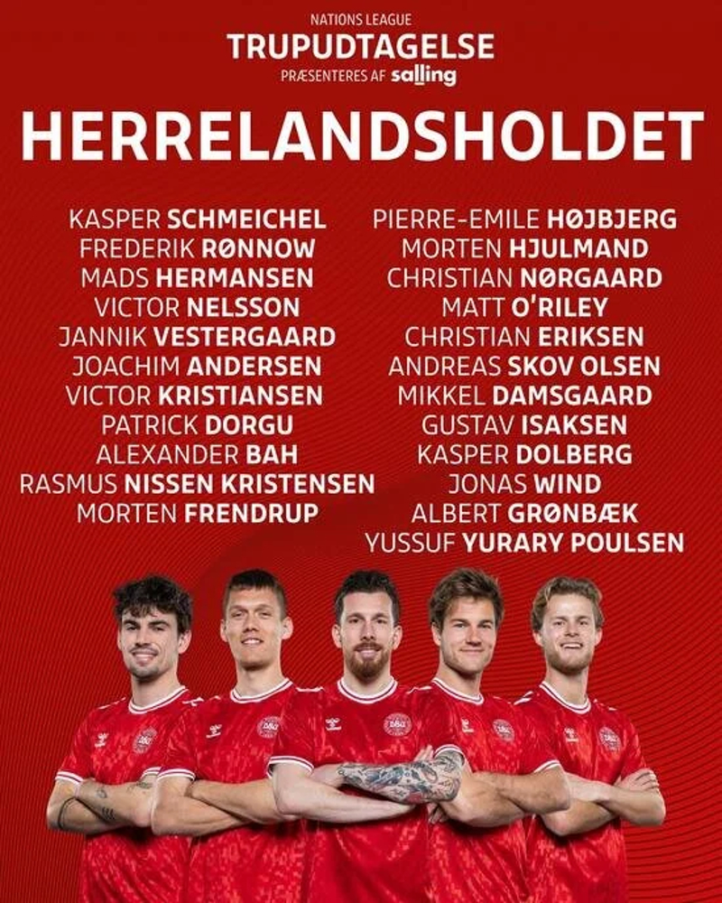 Danimarka, Uluslar Ligi'nde İsviçre ve Sırbistan ile oynayacağı maçların kadrosunu açıkladı.