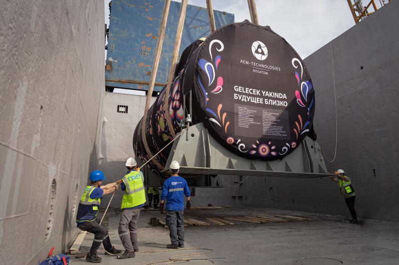 Karayolunun ardından denizyoluyla taşınan reaktör basınç kabı, özel kendinden tahrikli bir platform üzerinde iskeleye getirildi. Ekipman, deniz yoluyla 3 bin kilometreden fazla yol kat ederek Akkuyu NGS sahasındaki Doğu Kargo Terminali'ne ulaştı.