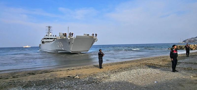 İstanbul'da Anadolu Tersanesi'nde Türk Deniz Kuvvetleri için üretilen Yeni Tip Çıkarma Gemisi Ç-159'un testleri çerçevesinde Yalova'da kıyıya çıkarma yapıldı.