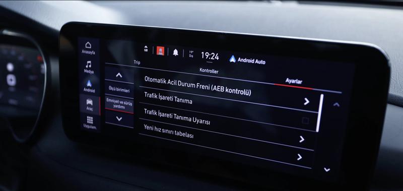 Otomatik uzun far kontrolü, gece sürüşlerinde çevresel ışık koşullarına göre farları otomatik yönetiyor. Sürücü yorgunluk uyarısı, sürüş davranışındaki değişimleri analiz ederek sürücüyü erken aşamada uyarıyor. Trafik işareti tanıma sistemiyle algılanan yol işaretleri, akıllı hız yardımı fonksiyonu ile entegre çalışarak hız sınırlarının güvenli ve mevzuata uygun şekilde yönetilmesine katkı sağlıyor. Tüm bilgiler, sürücünün dikkatini dağıtmadan gösterge paneline aktarılıyor.
