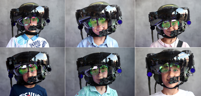 ASELSAN standını ziyaret eden çocuklar, kurumun ürettiği ve T129 Atak Taarruz ve Taktik Keşif helikopteri pilotlarının kullandığı "avcı kaskını" takarak fotoğraf çektirdi.