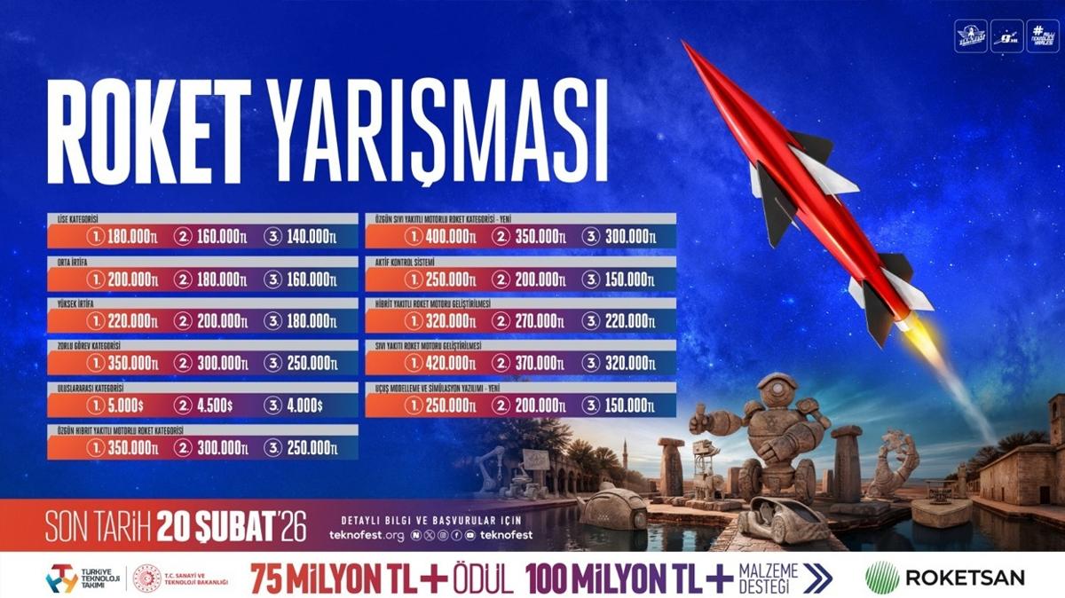 Milyonları aşan ödül, 11 farklı kategoride kurgulanan rekabet yapısı ve gençlere sunduğu benzersiz mühendislik deneyimiyle TEKNOFEST 2026 Roket Yarışması, Türkiye'nin uzay ve savunma teknolojileri alanındaki geleceğini şekillendirecek genç yetenekleri bir araya getiriyor.