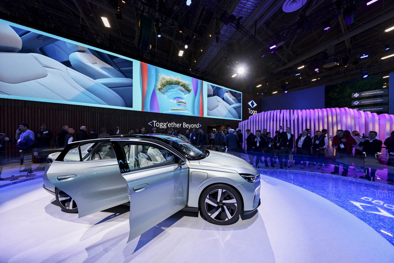 Togg'dan yapılan açıklamaya göre, Las Vegas'ta düzenlenen CES'te doğuştan elektrikli ikinci akıllı cihazı T10F'i dünya sahnesine çıkaran Togg, mobilite ekosisteminin üç dikeyini oluşturan akıllı cihazları T10X ve T10F, dijital deneyim platformu Trumore, temiz enerji çözümleri Trugo ve Siro ile ziyaretçilere kişiselleştirilmiş ve sürdürülebilir bir mobilite deneyimi yaşatıyor.