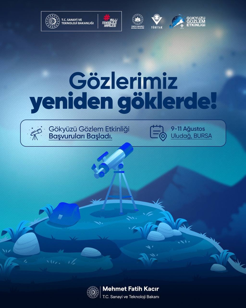 Paylaşımına "Gözümüz yeniden göklerde!" ifadesiyle başlayan Kacır, TÜBİTAK Gökyüzü Gözlem Etkinliği'nin, 26'ncı senesinde bilimle toplumu buluşturmaya devam ettiğini aktardı.