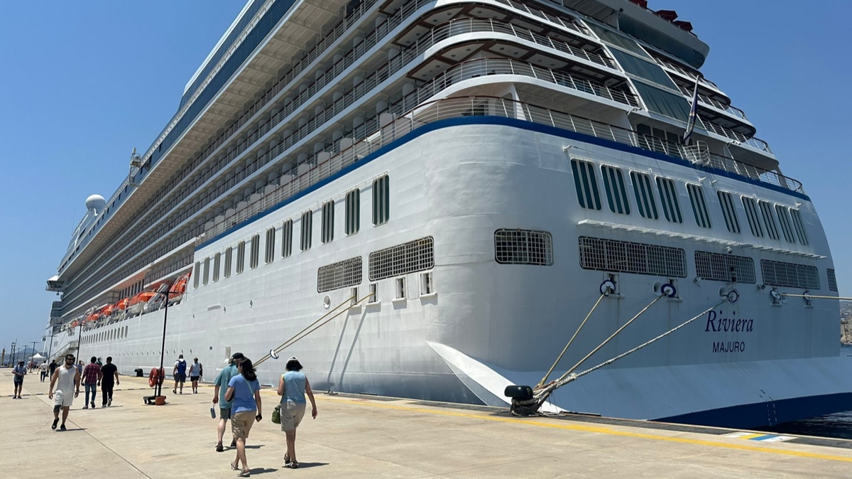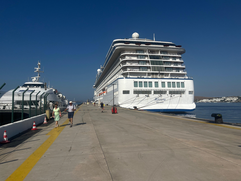 Kandiye Limanı'ndan gelen Marshall Adaları bayraklı 239 metre uzunluğundaki yolcu gemisi, Bodrum Cruise Port Limanı'na yanaştırıldı.
