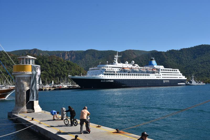 İzmir'in Çeşme ilçesinden gelen Saint Kitts ve Nevis bayraklı 200 metrelik yolcu gemisi, Marmaris Limanı'nın büyük iskelesine yanaştırıldı.