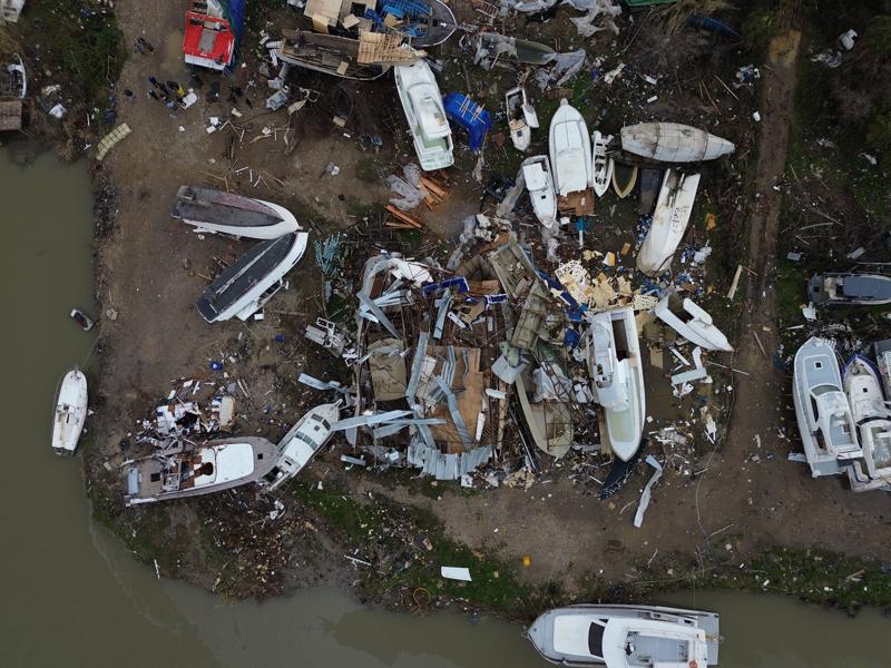 Bölgede bulunan zeytin bahçeleri, badem ağaçları ve çam ağaçları hortumun şiddetiyle kökünden sökülerek devrildi, tarım alanları da zarar gördü.