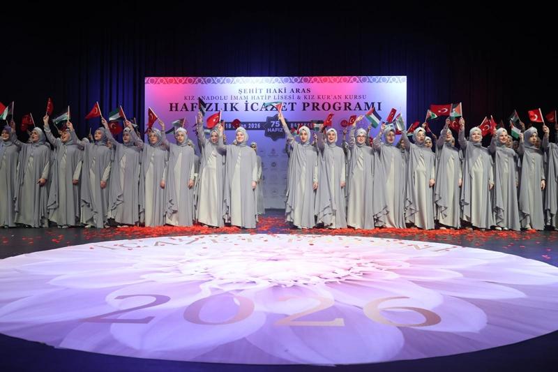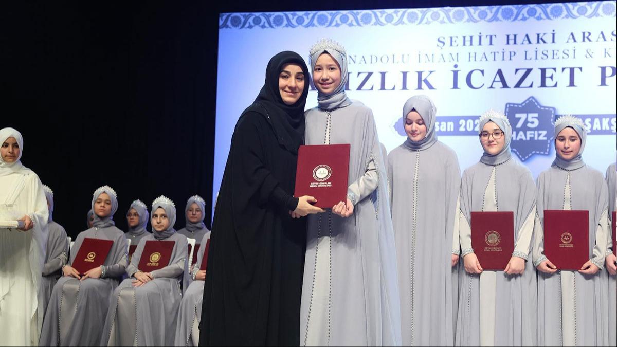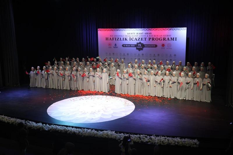 Başakşehir Şehit Haki Aras Kız Anadolu İmam Hatip Lisesi ve Kız Kur'an Kursu'nda hafızlıklarını tamamlayan 75 öğrenci düzenlenen törenle icazetlerini aldı.
