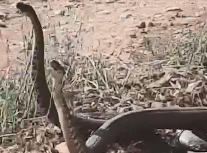 Engerek türü olduğu düşünülen 2 metre uzunluğundaki yılanlar, bir süre sonra gözden kayboldu.