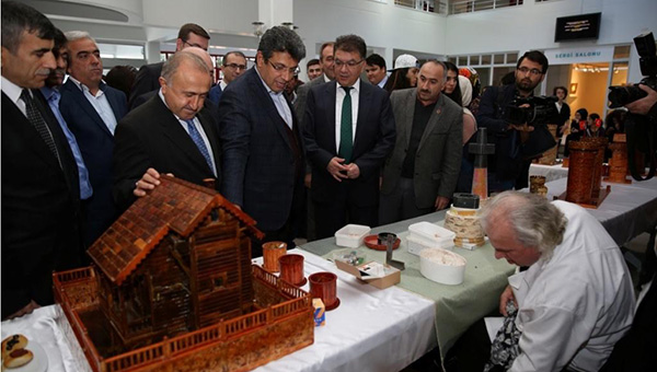 Doğuştan sağır ve dilsiz olan Köksal’ın gözlerini de 26 yaşında kaybettiğini belirten Başkan Karadeniz, ‘’Eşiyle arasında mucizevi bir aşk var. İşte o aşkla bu eserleri ortaya çıkarmış. Aralarında bir dokunma dili oluşturmuşlar. Her zorluğun üstesinden gelmişler. Hanımefendi bize de tercümanlık etti. Ali Bey esprili, hayatı doya doya yaşayan bir insan. Bu dünya imtihan dünyası. İmtihanını zor sınavlarla geçiren kardeşlerimiz var. Zaman zaman hepimizi bunaltan şeyler oluyor. Herkese Ali Bey’in sabrından, tevekkülünden ve imanından nasip olmasını temenni ediyorum’’ şeklinde konuştu.