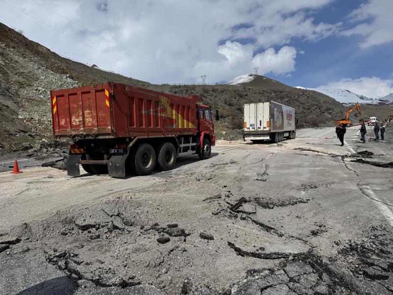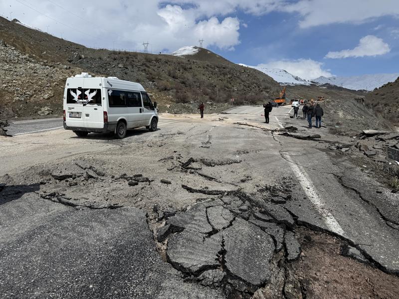 Heyelan sonrası Van-Hakkari kara yolunun Akçalı köyü yakınında çatlaklar ve çökme oluştu.