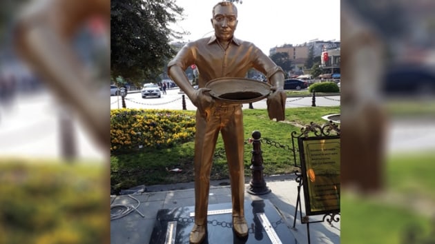 Hayretler içinde kaldıklarını anlatan Sevinç, "Bu sabah dükkanımızı açtığımızda baktık ki heykelin elindeki künefe tepsisi yok. İlk önce tepsinin tadilat dolayısıyla yerinde olmayabileceğini düşündük ama vidaların kırıldığını ve zabıtanın tutanak tuttuğunu görünce çalındığını anladık. Tepsiyi çalan kişinin amacı nedir merak ediyoruz." ifadelerini kullandı.