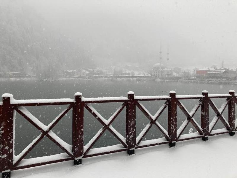 Trabzon'un dünyaca ünlü turizm merkezi Uzungöl, yurdun dört bir yanında etkili olmaya başlayan kar yağışıyla birlikte adeta beyaz gelinliğini giydi. Gece saatlerinden itibaren etkisini artıran kar yağışı, Uzungöl ve çevresini kısa sürede beyaza bürürken, bölgede kar kalınlığı yer yer 15 santimetreye ulaştı.