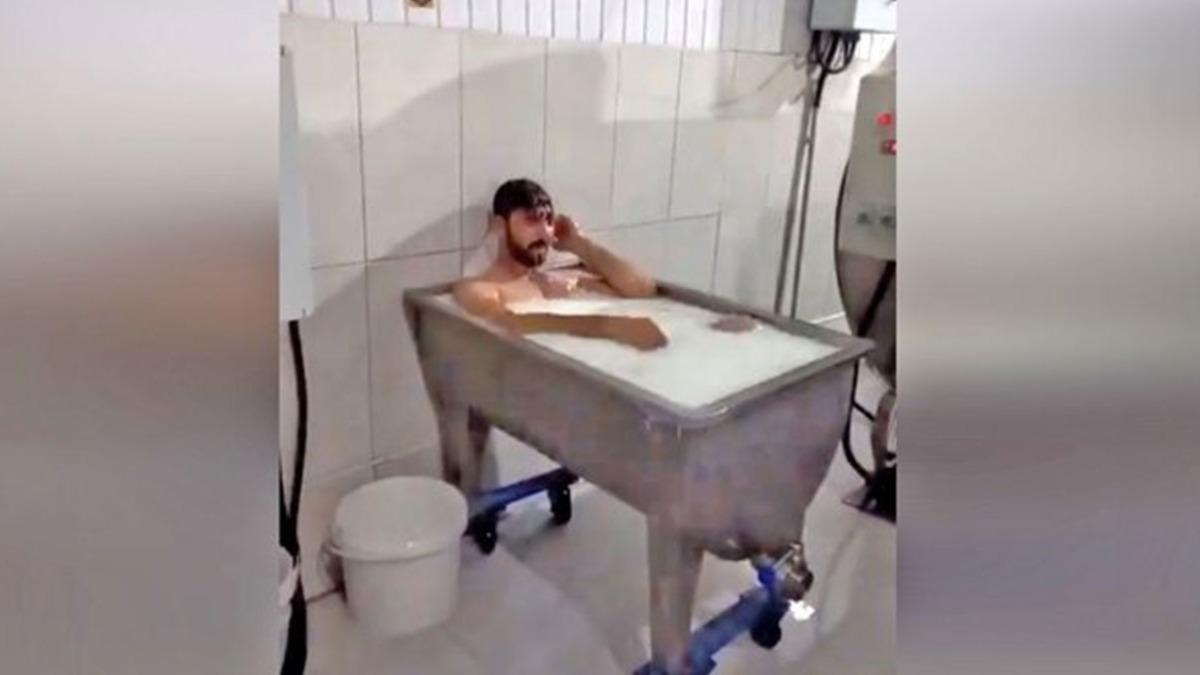 Konya'daki bir süt toplama merkezinde tekne içerisindeki sütle banyo yapan çalışan ile bunu görüntüleyerek sosyal medyada paylaşan kişi gözaltına alındı.
